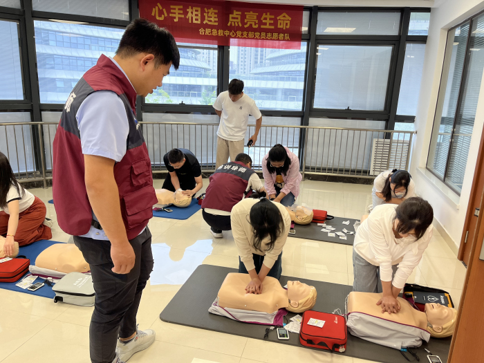 5月21日下午,色情网站 组织人员前往安徽省急救中心进行急救技能培训,培训内容为初级生命支持+AED急救培训,共有20余名医护人员参加了此次培训。